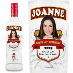 A unique and funny 18th birthday gift for someone that loves Smirnoff vodka. Upload a photo and we will add it to the label along with the message. The label will be bespoke designed by our graphic designer for a truly unique and special 18th birthday gift.