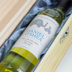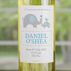 Blue Elephant New-born Baby Boy Personalised Wine Gift