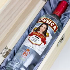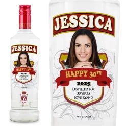 Personalised Smirnoff Vodka bottle for a 30th birthday gift. Add an image or the year him or her was born to the personalised bottle of Smirnoff Vodka for a truly personalised and unique spoof 30th birthday gift that will really surprise them. This 30th Birthday gift will really impress everyone at the birthday party.